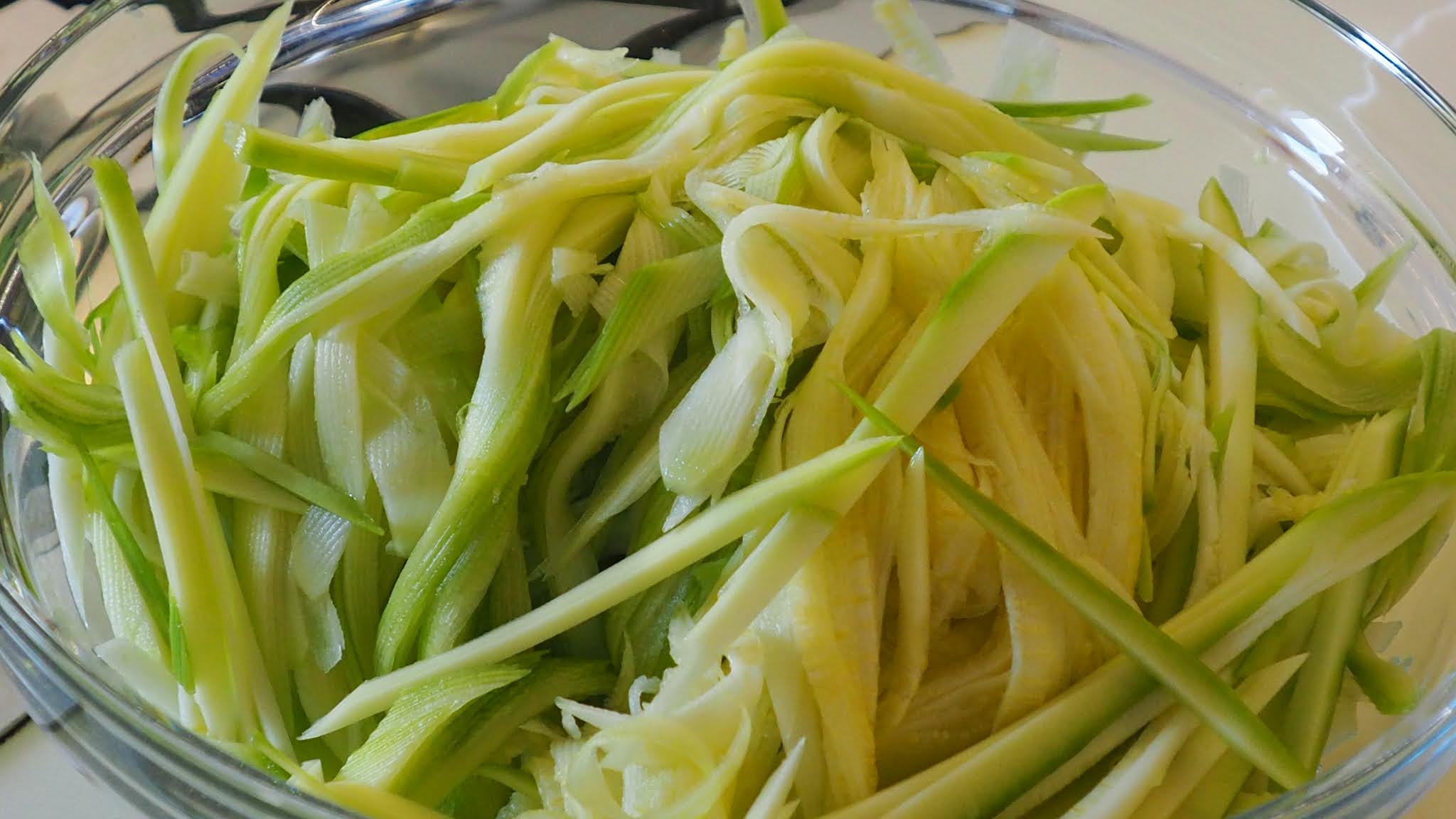 - 4 zucchini (1.3 kg) (peeled and julienne cut);
